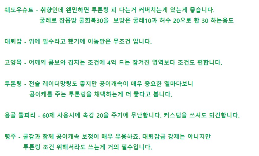 저는 일단 룸버스 엘마 해볼생각인데 쿨타임 가동수준땜에 추천은 못드리겠네요.