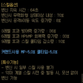 105제 '결전의 낫-미스트리스' 로 인해 변신시간을 쿨타임 이상으로 유지가 가능해져서 플레이가 크게 쾌적해졌습니다.