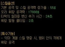 스킬 설명을 보면, 악마 계열 스킬 명중시 범위 안의 적에게 휘광공격을 한다고 나와있습니다.