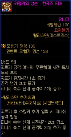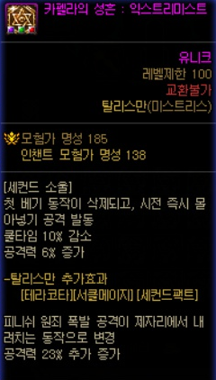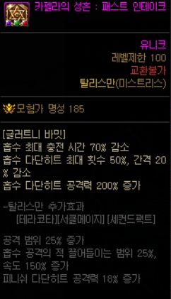 리디머의 스킬 중 75lv 스킬 세컨드 소울을 강화시킵니다. 세컨드 소울의 시전시간을 대폭 감소시키며 쿨타임도 줄여주고, 공격력도 늘려주는 강력한 탈리스만입니다.