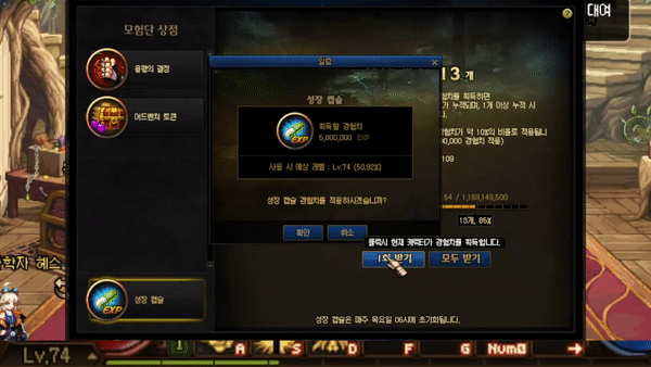성장 캡슐은 부캐릭터 키울 때, 레벨 상승권의 비는 사이사이마다 사용하면 레벨업이 편하게 진행됩니다.