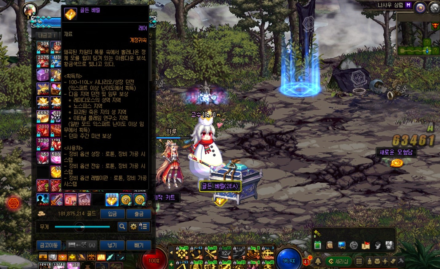 부계정 골든베릴은 4000개/ 골드는 2000만정도 벌었습니다.
