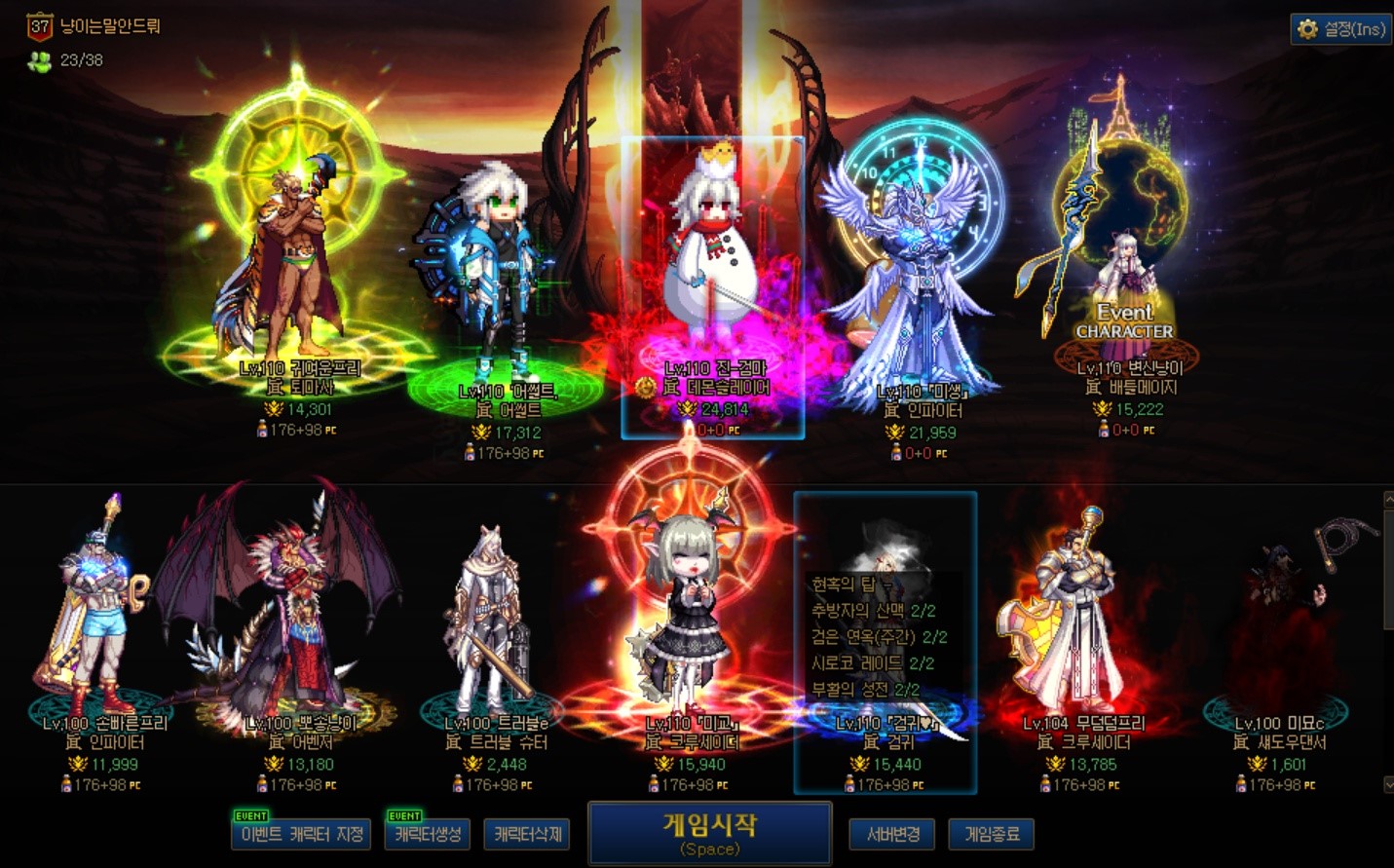 본계정은 20캐릭정도 하루 피방풀피녹였어요!