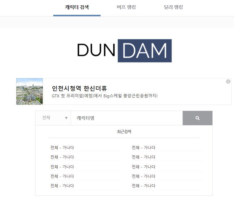 PC방에서 같은 자리에서 어제 검색한 제 모험단 이름이