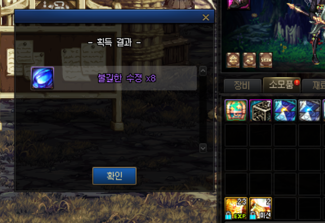 그 장비를 활용하여야 하나... 여전한 확률로 인한 대부분이 수정 상자입니다.