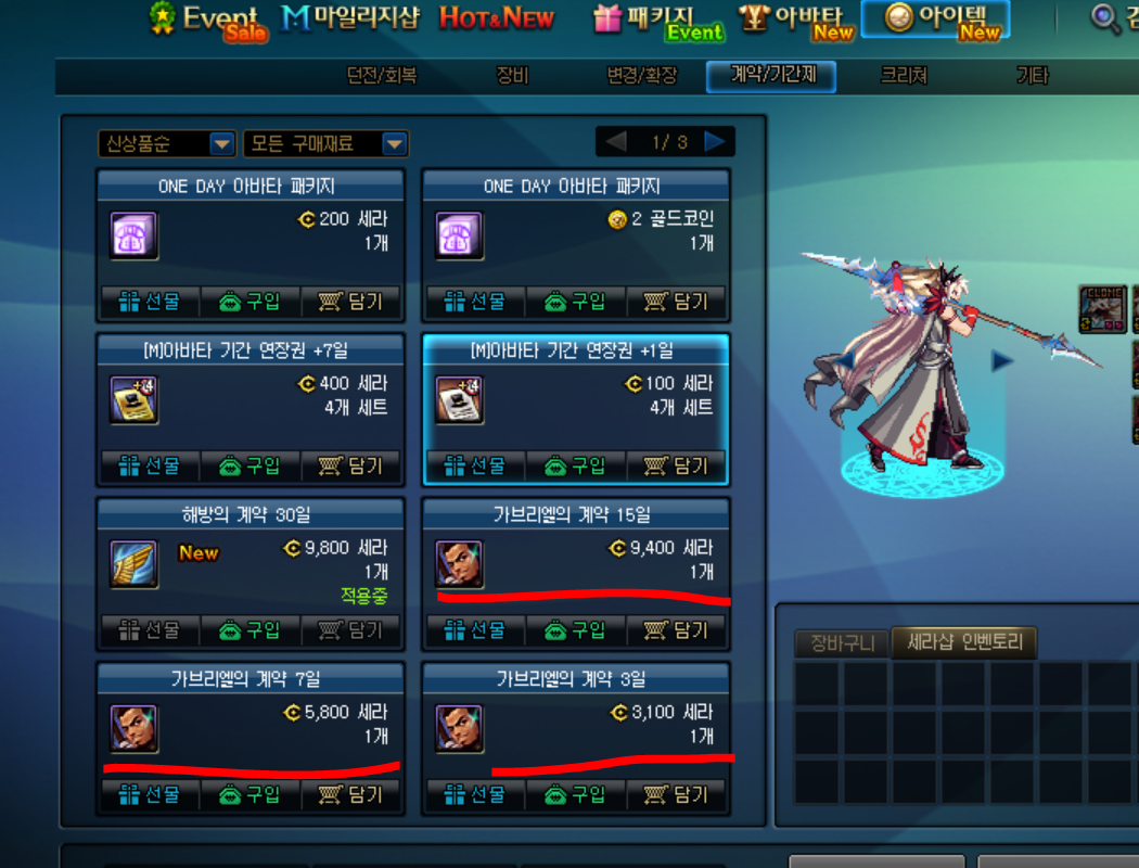 현재 가브리엘의 계약은 3일 / 7일 /15일 으로 단독판매를 시작했는데요.