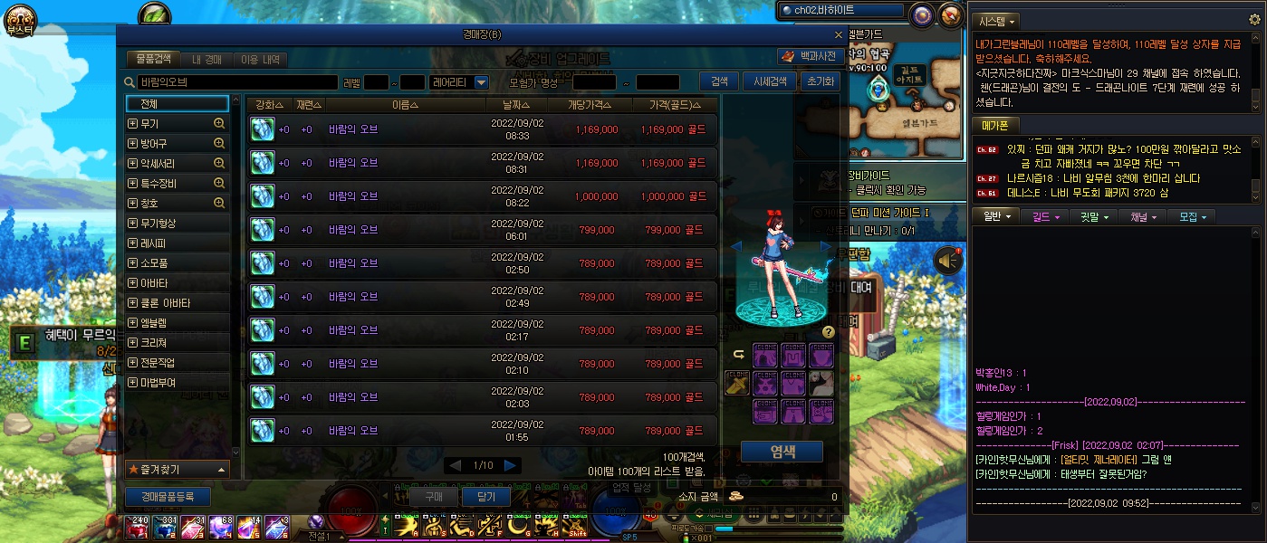 바람의 오브가 그 주인공인데요. 경매장 가격은 대충
