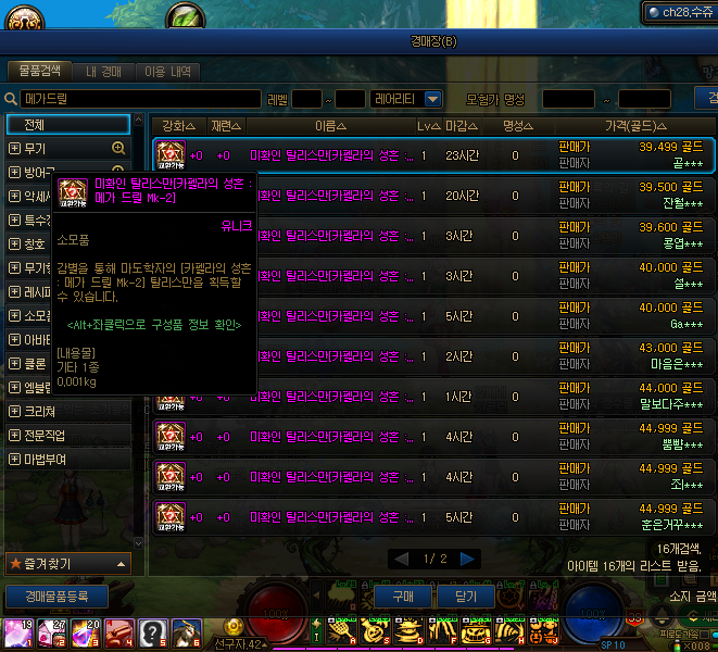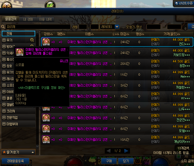 2. 경매장에서 자기 전직 탈리스만 구매 하여 합성 하기