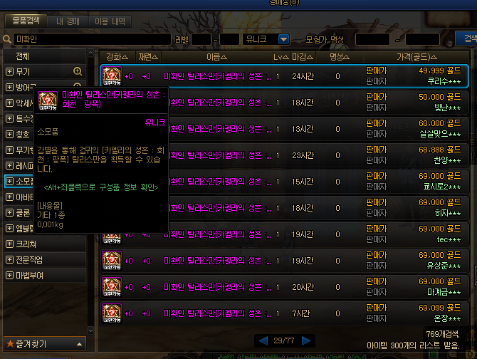 현재 탈리스만 은 경매장에서 자신이 원하는 탈리스만을 바로 구매 할 수 있어