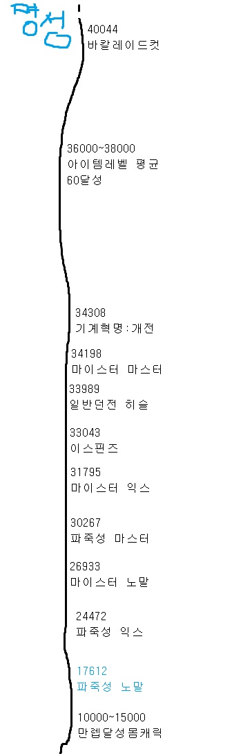 먼저 이건 이번시즌 컨텐츠 구간별 명성 수치를 정리한 그림입니다.
