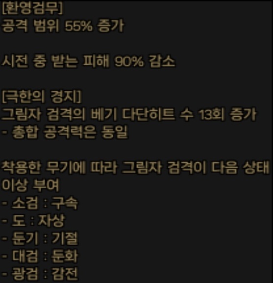 그나마 레거시 무기인 무형검이 무기 자체만 떼어놓고 보면 좋은 성능의 무기라는 것이 소검의 유일한 위안점입니다.