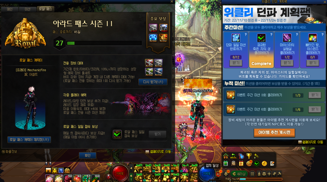 기간동안에 2캐릭을 이벤트 장비 없이 명성 25500을 넘기는데 성공하면
