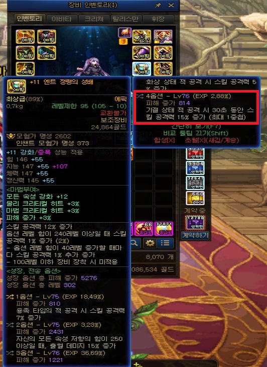 수많은 ## 대상 상태 적 타격 시 스증 옵션 중 암흑과 기절에 관한 이야기입니다