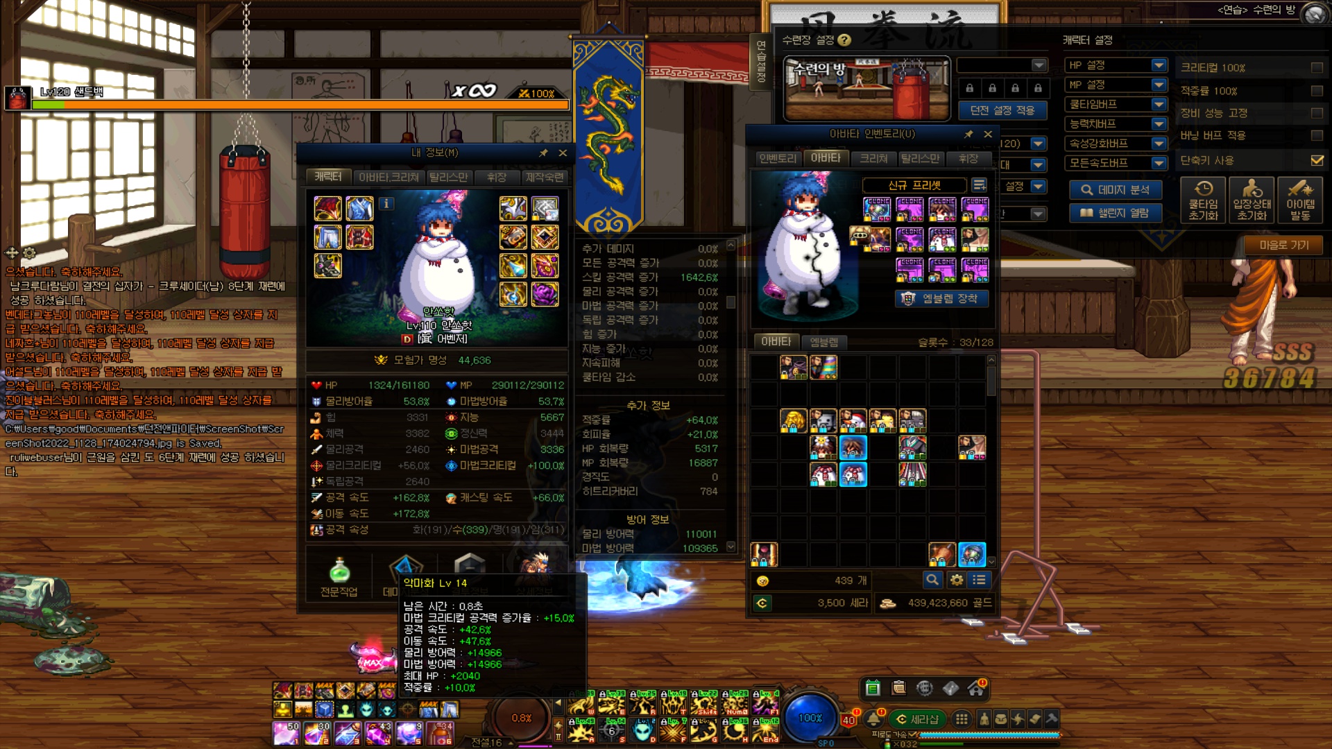 본인 캐릭터와 체력 스탯등 차이가 날수있어서 오차있습니다.