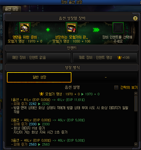 쓰고 있던 장비에 성장시켜서 완전성장을 해주면