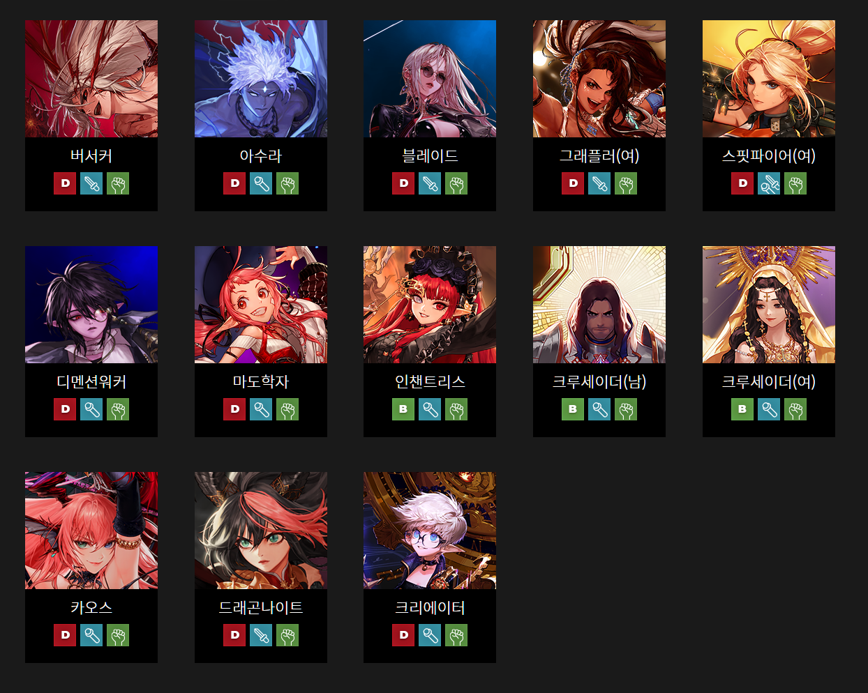 현재 던파사이트에서 확인 할 수 있는 재련 캐릭터들 입니다.
