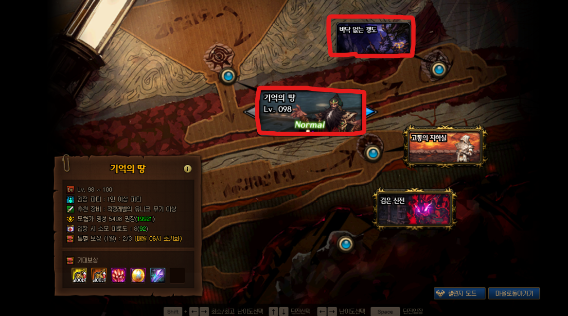 이번시즌 던전들(백색의땅, 베리큘러스... 등등)​