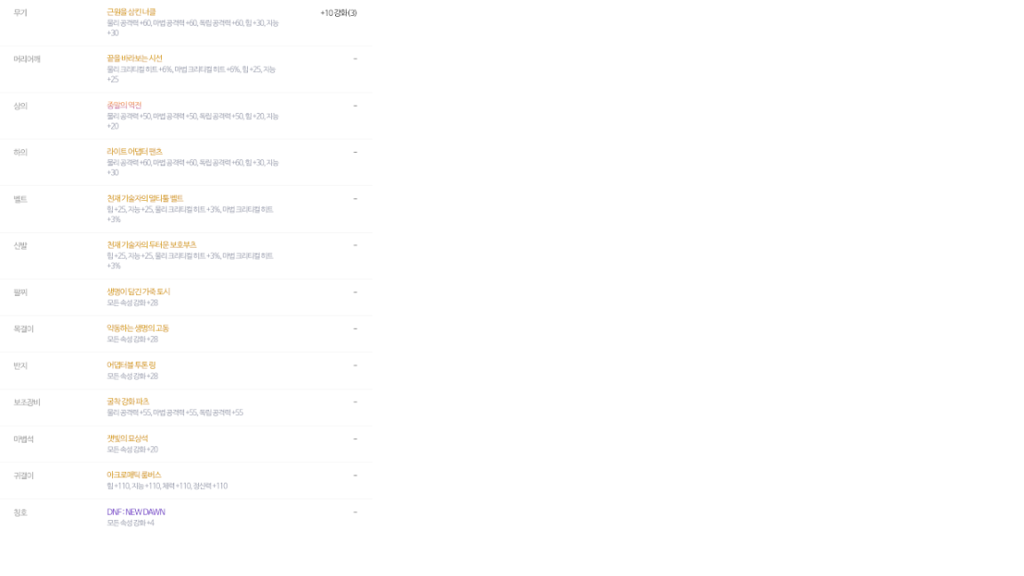 공지 [상시이벤트] 2월 묻고답하기 이벤트 안내 (1월 답변왕 발표) 던전앤파이터 2026.02.12 4,236 1 공지 내 전직 가이드 작성/갱신 이벤트 (2/12 ~ 2/26) (14) 던전앤파이터 2026.02.12 6,028 4 공지 2025 던파페스티벌 20th Anniversary 발표 요약 던전앤파이터 2025.11.22 222,660 25 공지 장비 / 플레이 / 뉴비 정보 모음 (222) 던전앤파이터 2025.04.24 999,999+ 118 공지 던전 공략 모음 (디레지에 레이드) (185) 던전앤파이터 2025.11.26 999,999+ 143 공지 전직 별 가이드 모음 (25/02/27 갱신) (759) 던전앤파이터 2026.02.27 999,999+ 400 수다 [공통] 우와 (24) ExMachina:D 2022.12.13 733 0 질문 [여넨마스터] 템셋 질문드립니다 (3) 오곡전도사_ 2022.12.13 806 0 수다 [공통] 다들 맛저 ^^7 엘6 2022.12.13 400 1 질문 [공통] 수련의방 샌드백 딜이랑 던담딜표랑 왜다른지 아시는분있나요? (14) 나미버거★ 2022.12.13 908 0 수다 [공통] 수게여러분 (6) 여고생벨라 2022.12.13 522 0 수다 [공통] 군산가면서 먹을 저녁 (10) Flaxseed 2022.12.13 789 0 수다 [공통] 27층 지으면서 스노우 메이지 다 뽑았네요.ㅋㅋ (1) Gavlyn 2022.12.13 747 0 수다 [공통] 네오플 아카데미 떠러졌다 (6) 소식통13 2022.12.13 977 0 수다 [다크 랜서] 검은재앙 절명 구하고싶습니다. 파시는분 연락주세요 (3) 닼랜짱구 2022.12.13 1,260 0 질문 [베가본드] 뉴비 질문좀.. (3) 설풍단 2022.12.13 933 0 수다 [공통] 요즘 붕어빵, 잉어빵 안팔더라구요. (12) 쁘띠큐티엘마 2022.12.13 680 0 질문 [공통] 옵티컬. 장비 등급 수치 (8) 이너요원 2022.12.13 660 0 수다 [공통] 점심약 먹고 잤더니 (1) 캔슬하슈 2022.12.13 661 0 수다 [공통] 점점 스펙업 하기 힘들어 지네 (7) 쿄우카할로윈 2022.12.13 863 0 수다 [공통] 아~ 융합무기 갖고싶다~~ (3) 서민계층 2022.12.13 874 0 질문 [남레인저] 던린이 템셋팅 추천좀요, .. (3) 나의손을위함 2022.12.13 794 0 질문 [공통] 불가침 영역 뽑았는데 이거 옵 괜찮은가요 (4) 무형겸 2022.12.13 702 0 수다 [공통] 소마는?! (10) 명도잔월파 2022.12.13 770 0 질문 [공통] 칭호, 오라 , 크리처 종결 명칭 문의 입니다 (9) 세번째손 2022.12.13 2,143 0 질문 [어벤저] 아칸 셋 질문입니다. (11) 잡몹3 2022.12.13 1,752 0