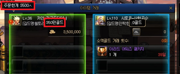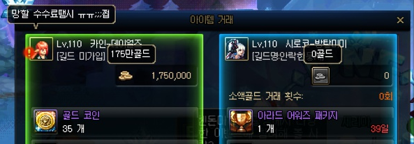 이와 같은 사기를 각별히 주의해주세요.(그리고 이 사기꾼은 계산도 못 하는지, 아니면 꼴에 푼돈이라도 더 쳐주겠다는 뜻인지 175만 골드를 주네요. 던파의 수수료는 3% 입니다. 3500의 3%면 105만 골드가 날아가는 것이죠.)