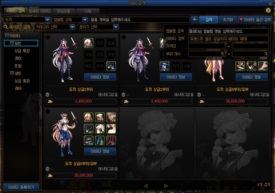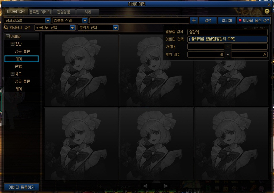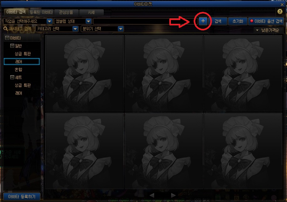 하지만 경매장에서 잘 안보이는 아바타도 아바타 마켓에 올라와있는 경우가 있으니