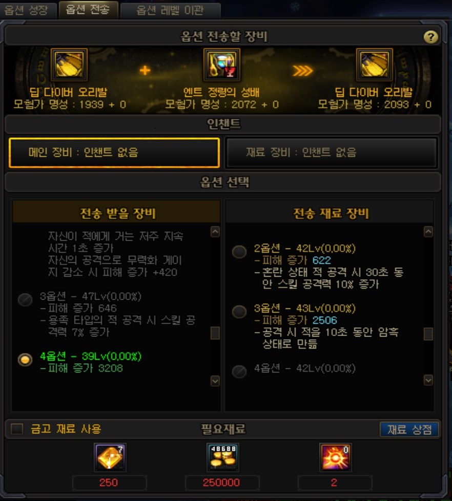 저는 커스텀 에픽은 자유롭게 옵션 이관이 가능 할 줄 알았습니다.
