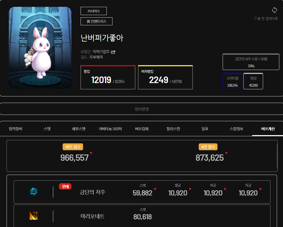 그리고 혹시 몰라서 버프강화에도 등록해놓고 버프력을 봤었는데