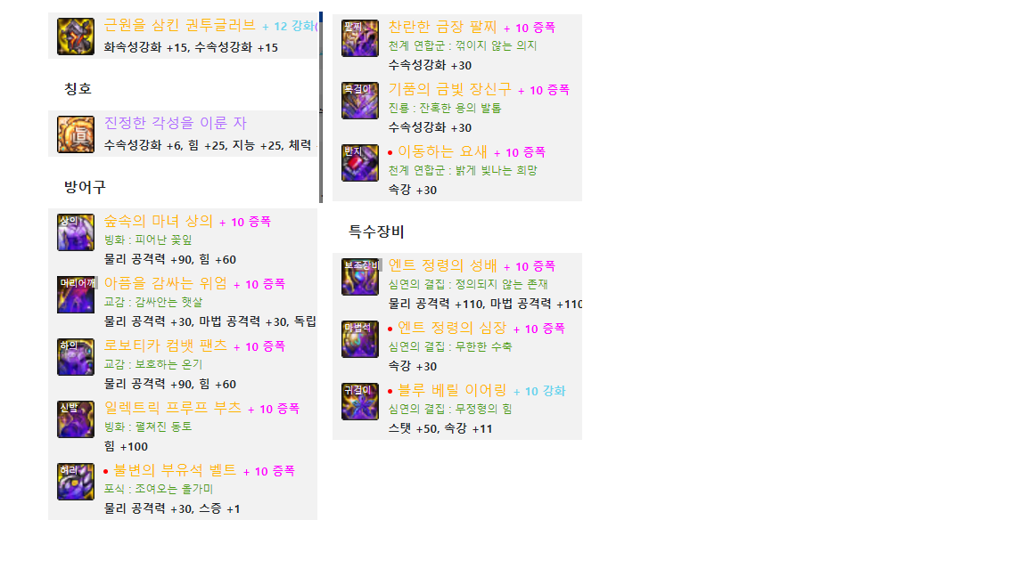 - 귀걸이 2옵션은 40%미만 스공 4%로 바꾼 설정으로 던오프로 적용했어요