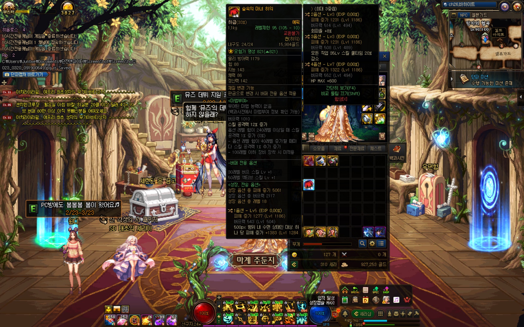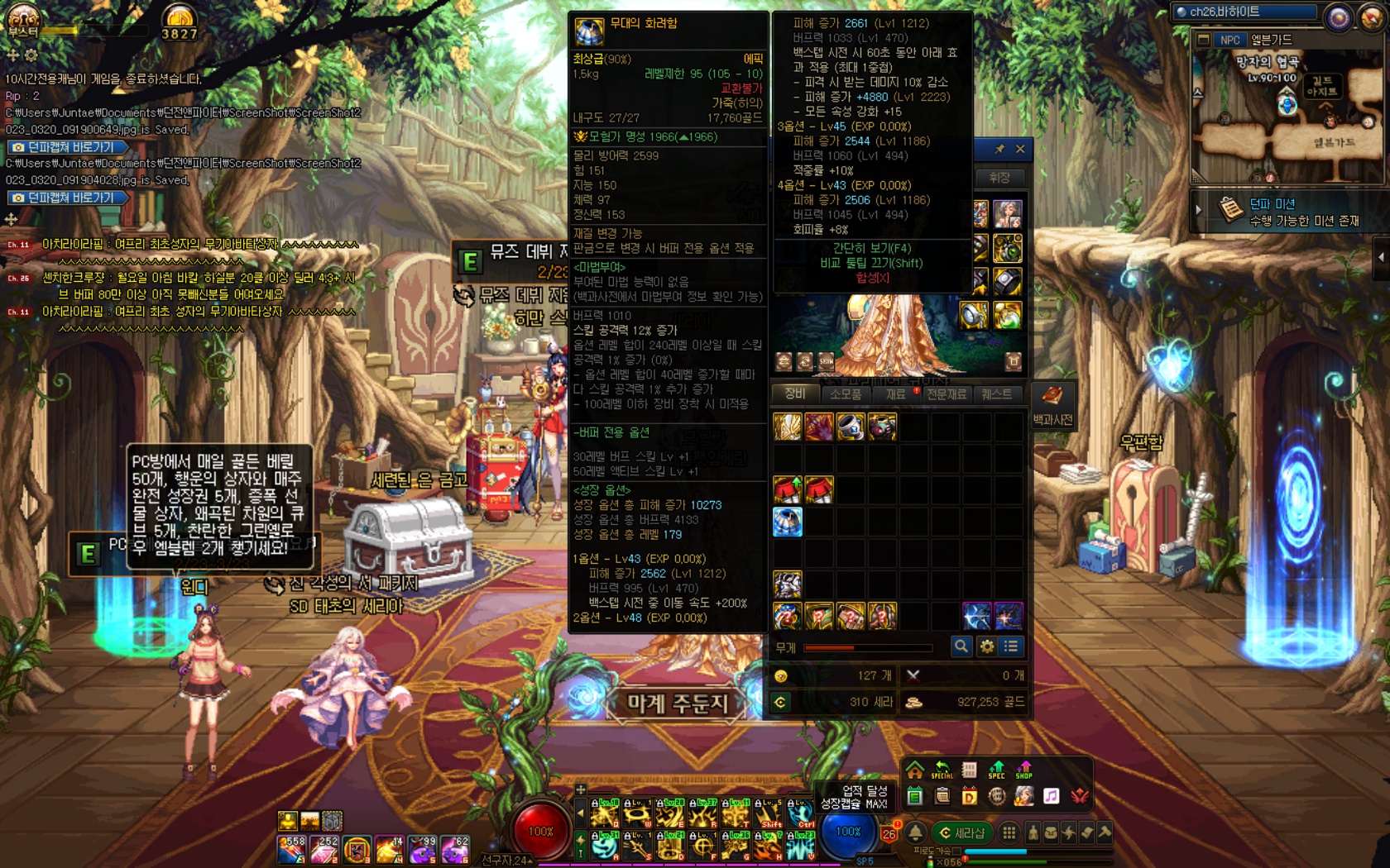 그래서 아래 스샷의 템(같은 하의종류)으로