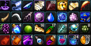 왼쪽 위부터 더러운피 (옛날 이계 디레지에탬), 설산 호랑이가죽, 용인의 눈, 카르텔 지령서, 베히모스 비늘 조각, 코스모소울, 성흔비단, 날카로운 늑대 이빨, 날카로운 가시, 조각난 칼날, 고블린의 손뼈, 사악한 결정(눈부신인가 빛나는인가도 있는데 넘겨버림), 지르콘, 무중력 조각, 플로라이트, 푸른 성경, 잘익은 포도, 마력의 정수, 머스크 멜론, 언더풋 특산 치즈, 다크 데킬라, 오거파워 포션, 큰 세계의 장난감, 하늘나무 열매, 어둠의 속삭임 포션, 엘프의 향기, 사악한 성수, 신성한 포도주, 마나에이드, 포츈 코인