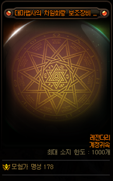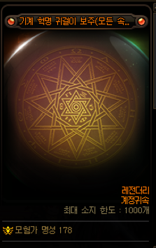 무기 극마부  물마독공 + 30 모든속성 +15 (얻기힘듬)