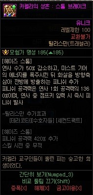 여기에, 스킬 쿨이 대체로 짧은 35제, 40제, 60제 스킬의 탈리스만 중 하나,