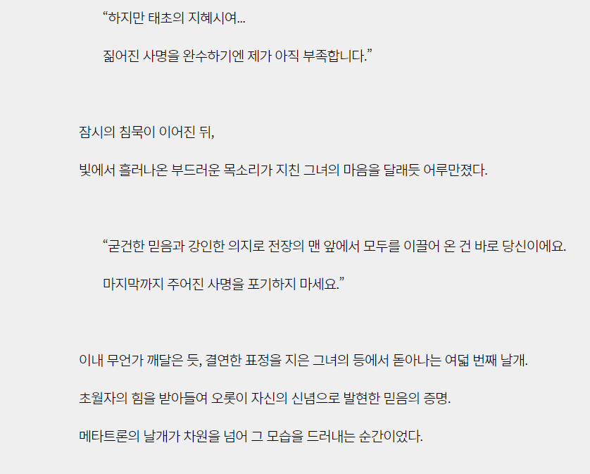 <초월자의 힘을 받아들여 메타트론을 현신하게 된 진 팔라딘>