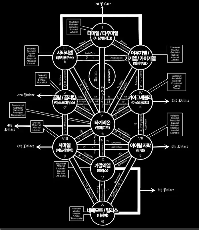 그리고 카발라 사상에서 중요시되는 개념인 세피로트의 나무와 매우 비슷한 부분이 굉장히 많습니다.