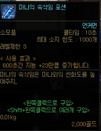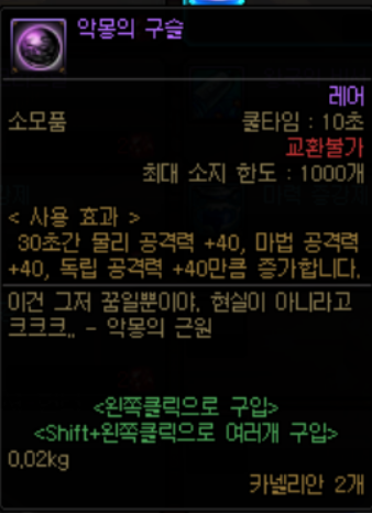 또한 효용성이 일절 없는 도핑약은 제외했습니다(예를들어 속성부여 도핑약, 당연히 만크를 찍어야하므로 크리확률 도핑약 제외)