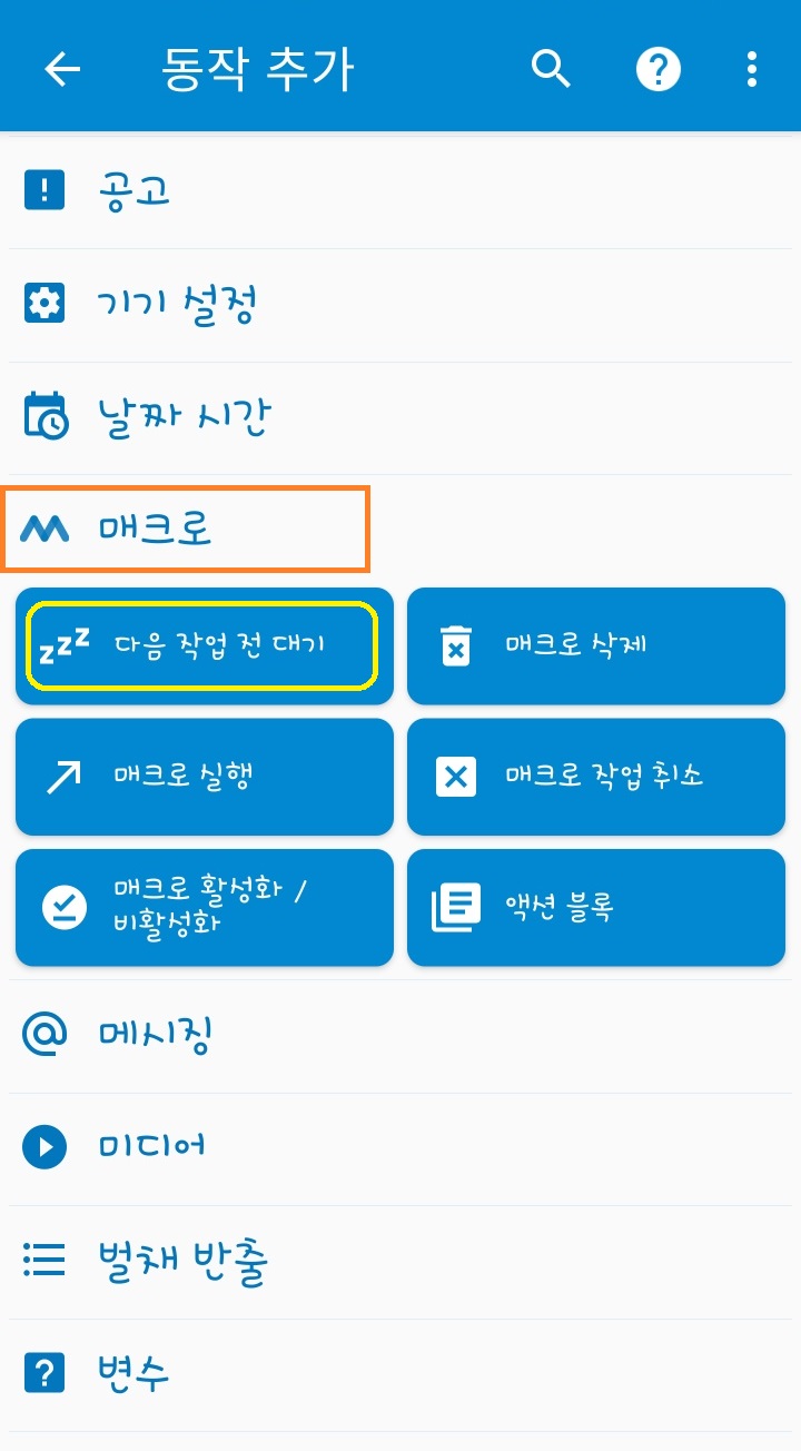 추가 2. '매크로' > '다음 작업 전 대기' 클릭