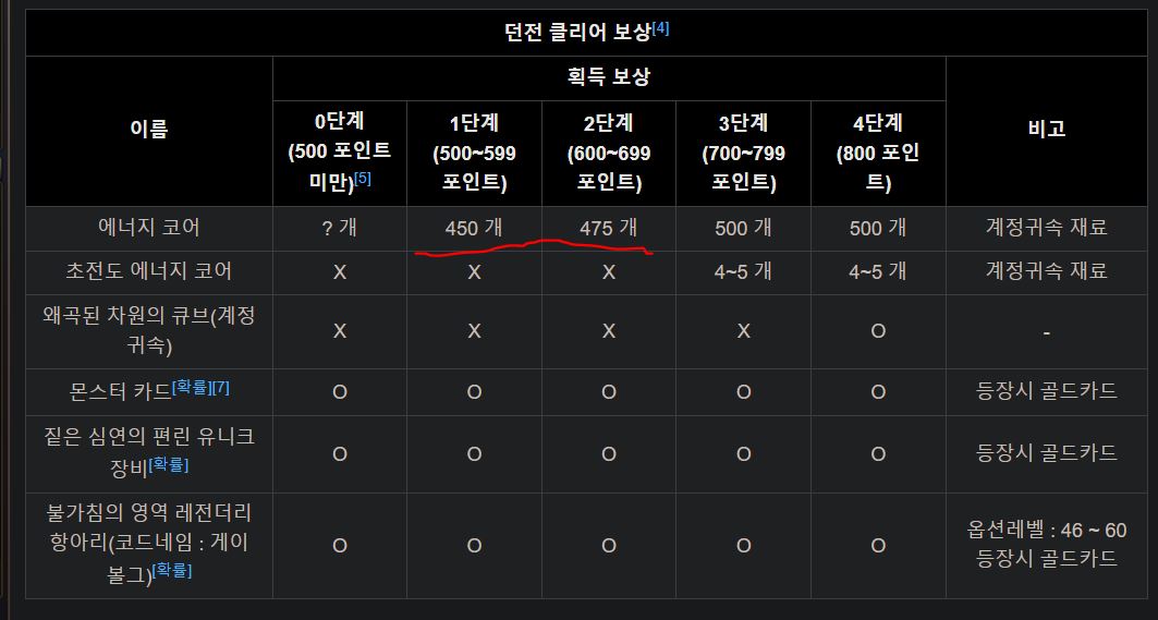 에너지코어 보상이 25개 밖에 차이 안나는데
