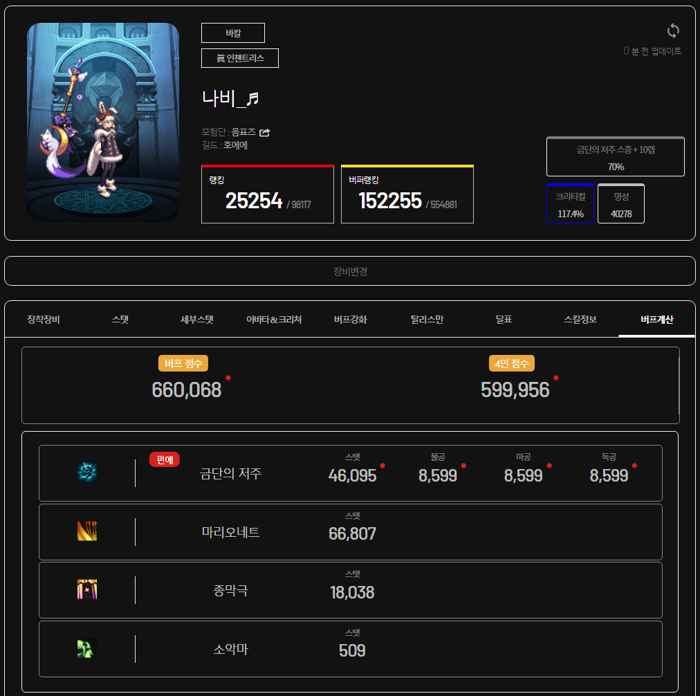 본 글의 주제는 "버프력 차이는 얼마만큼의 딜 차이가 나는가?" 입니다.