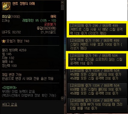 60레벨 모든 스킬의 쿨타임 30%증가 45레벨 모든 스킬 공격력 20% 증가 옵션까지도 나쁘진 않을꺼 같네요