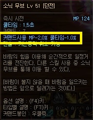 해당 옵션은 스킬에 마우스를 올려보면 나오는 mp 소모량, 쿨타임 감소 효과인데