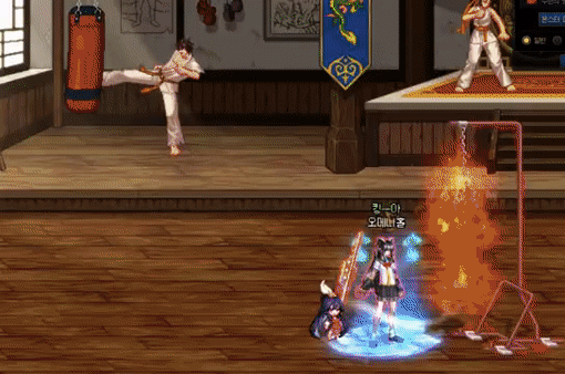 사거리가 짧은 삭풍과 캐릭터가 뒤로 밀려나는 윈드 블래스터를 묶고 방향키+Z 키로 설정하여 두 스킬을 사용후 Z를 한번 더 눌러 윈드 블래스터의 밀려남을 상쇄 시켰습니다.