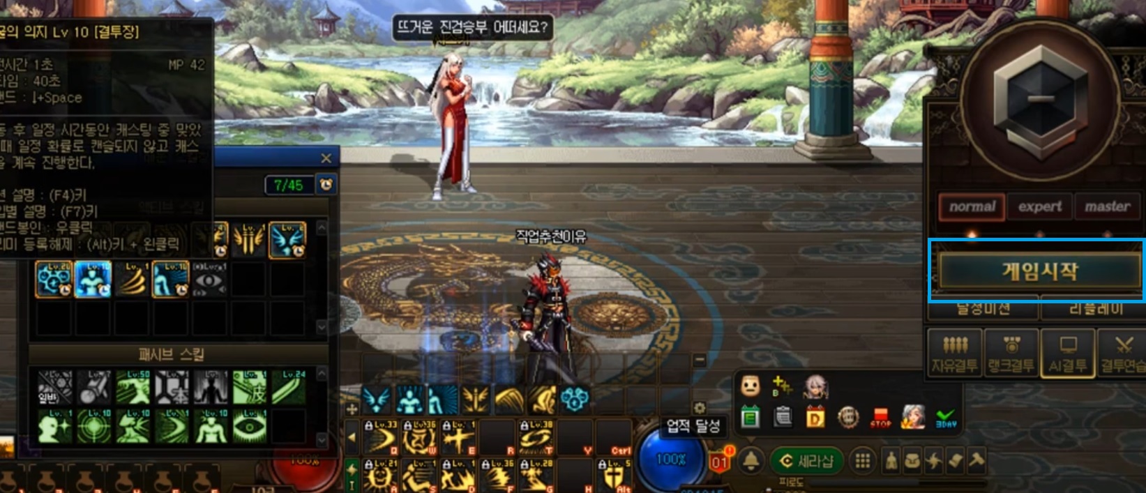 스킬을 편하신대로 조정하셨으면, 오른쪽의 '게임 시작'을 통해, 퀘스트를 진행할 수 있습니다.