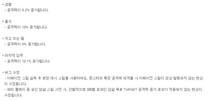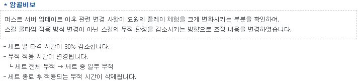 요원은 이미 딜 자체만으로는 낮은 축에 속하지 않았기 때문에 누락이 하나도 없이 상향 받았다는 것만으로 저는 무척 기쁩니다.