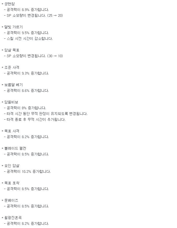 이건 딱히 요원만의 상향은 아니고 총검사(그리고 마창사)의 전체적인 상향입니다.