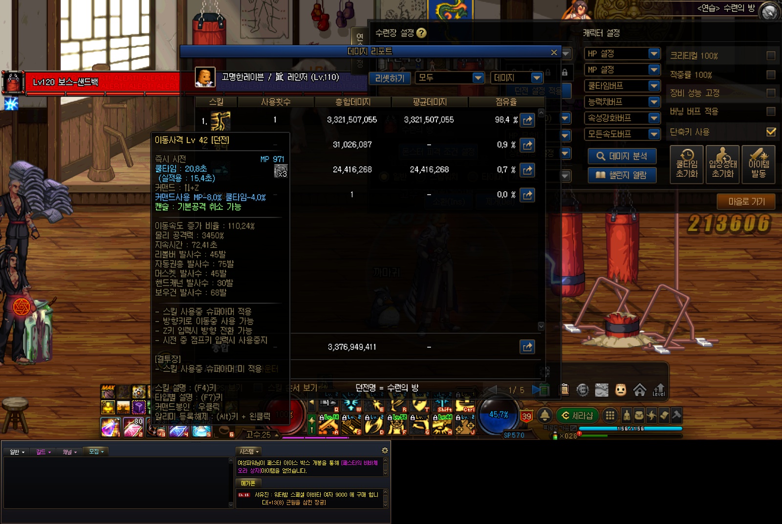 2.액셀레이션 리볼버 - 난사의 최대 연타를 줄여주고 풀타로 맞추게 해주는 스킬입니다. y축의 부재를 해결하는 스킬인 난사이기도 하고 쿨타임도 짫은 편이라 밥줄 스킬중 하나입니다.