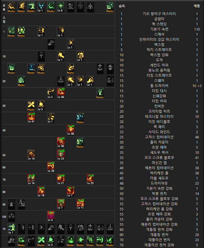 물론 인파이터 유저들의 다양한 스킬트리 때문에 내가 짠 스킬트리가 모두 정답이라곤 할 수 없다.