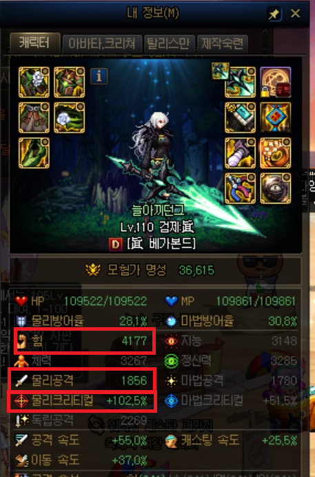 > 그러면 眞 베가본드는 '힘'을 올려야 하고, '물리공격'을 하니 강화딜러 라는 것을 알 수 있습니다.
