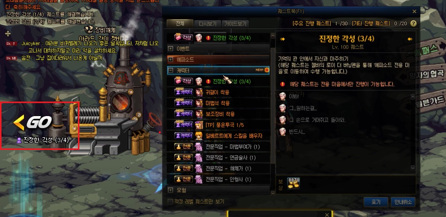 7. 진 각성하기 (길드 텔레포트 사용)