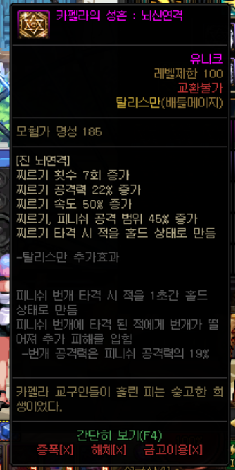 Ps) 배틀메이지는 엔트정령의어깨 고유옵인 "무색조각을 소모하지 않는 스킬 공격력 증가" 옵션빨을 매우 잘 받습니다