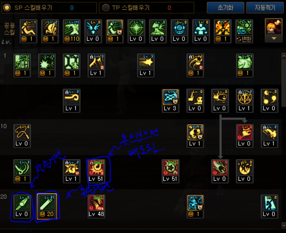 배틀메이지는 특이하게 패시브 스킬이 1렙 마스터라 풀스위칭 맞춰도 11렙입니다
