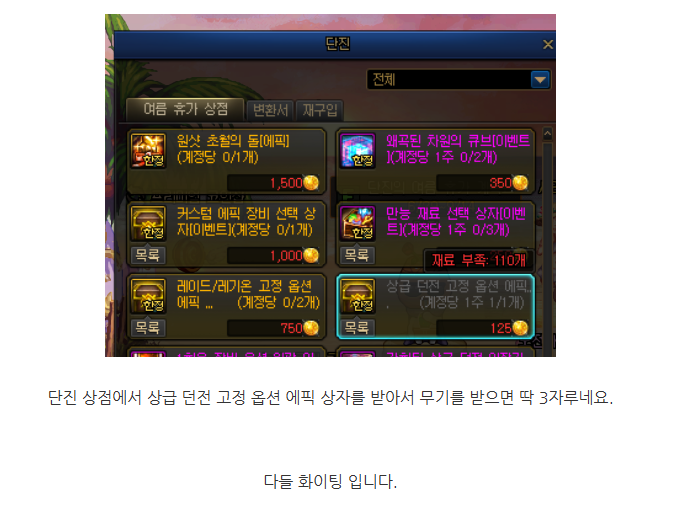 던파 시즌8 가이드. WON`S SPECIAL GIFT 기념 복귀 가이드라인. (1) :: GG (tistory.com)